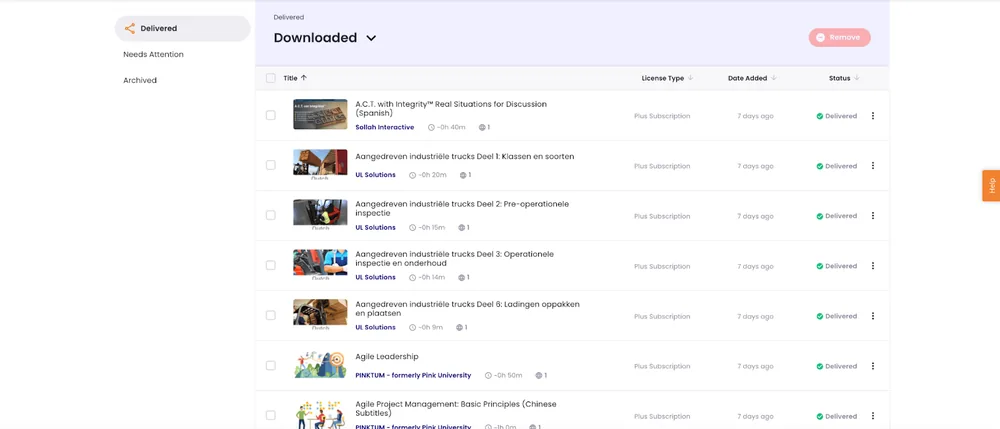 At a glance, admins can identify which courses have been downloaded or delivered to their LMS, remove unwanted courses, as well as easily replace courses that are up for retirement, and view courses that are no longer available, so that you can confidently take action as needed to manage your training program with efficiency.