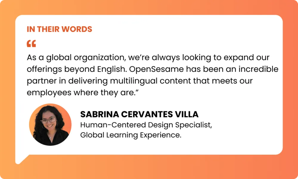 OpenSesame plays a critical role in this effort. With more than 900 curated OpenSesame courses integrated into their platform, Sabrina works closely with her Customer Success Manager and OpenSesame’s curation team to find the right content based on feedback from global surveys and regional partner meetings.