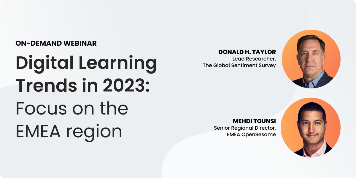 Join Donald H. Taylor, a celebrated thought leader in L&D, and Mehdi Tounsi from OpenSesame, for a focused look at the trends and priorities shaping workplace learning across the EMEA region.