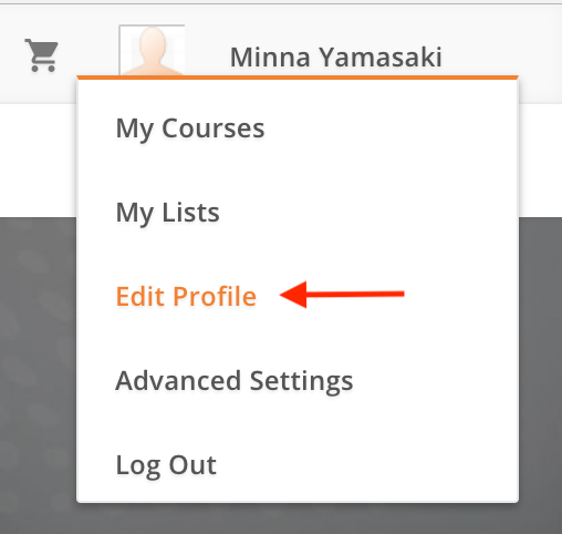 To add a stored credit card to your account, log into OpenSesame, and, in the top right corner under “Your Name,” click on "Edit Profile" from the dropdown.