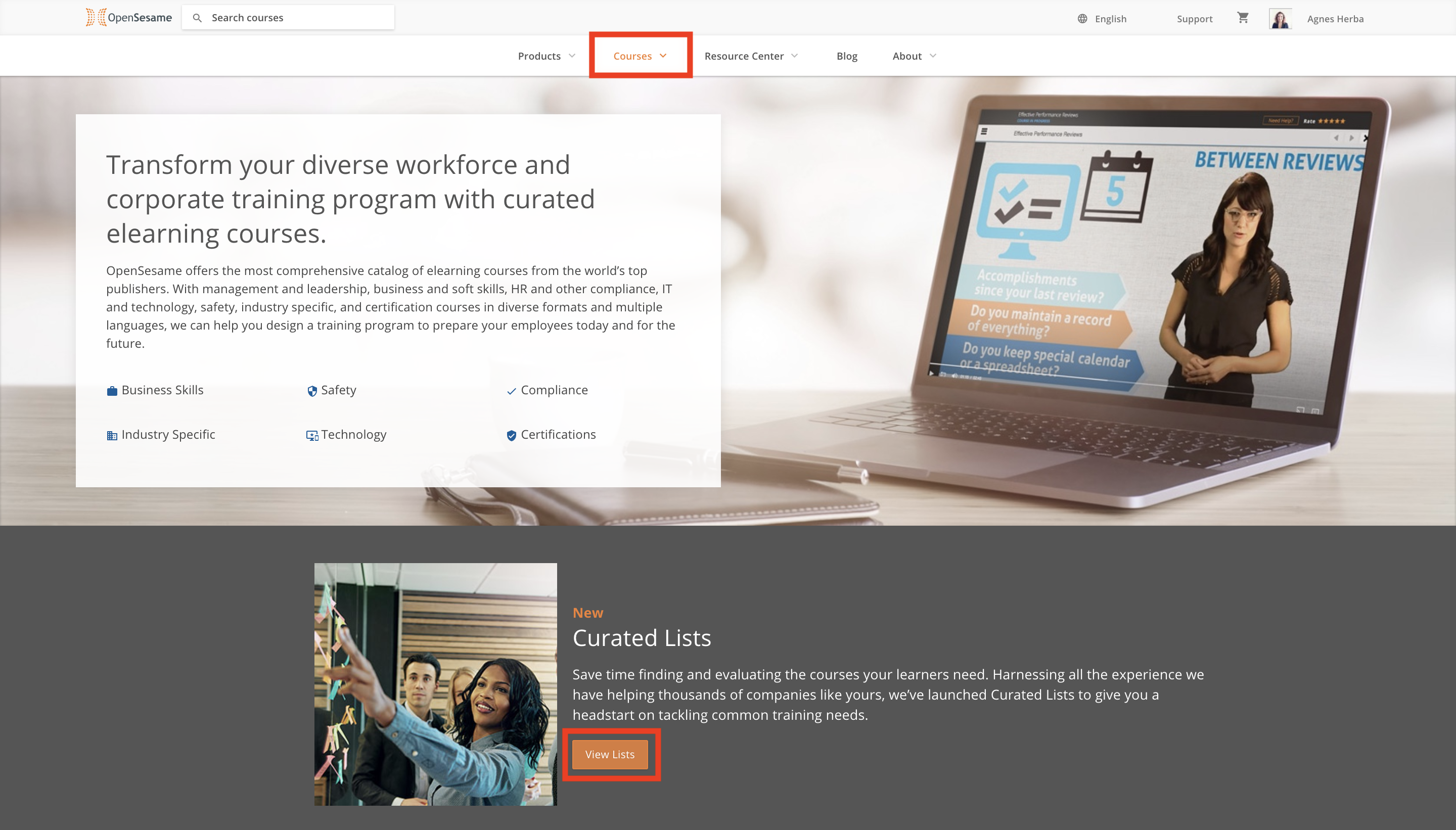 With Curated Lists, you’ll save time searching for courses and get a head start with pre-curated learning paths for the most common training challenges. To see the first available Curated Lists, go to www.opensesame.com, click Courses in the page header, and then click View Lists in the new Curated Lists section.